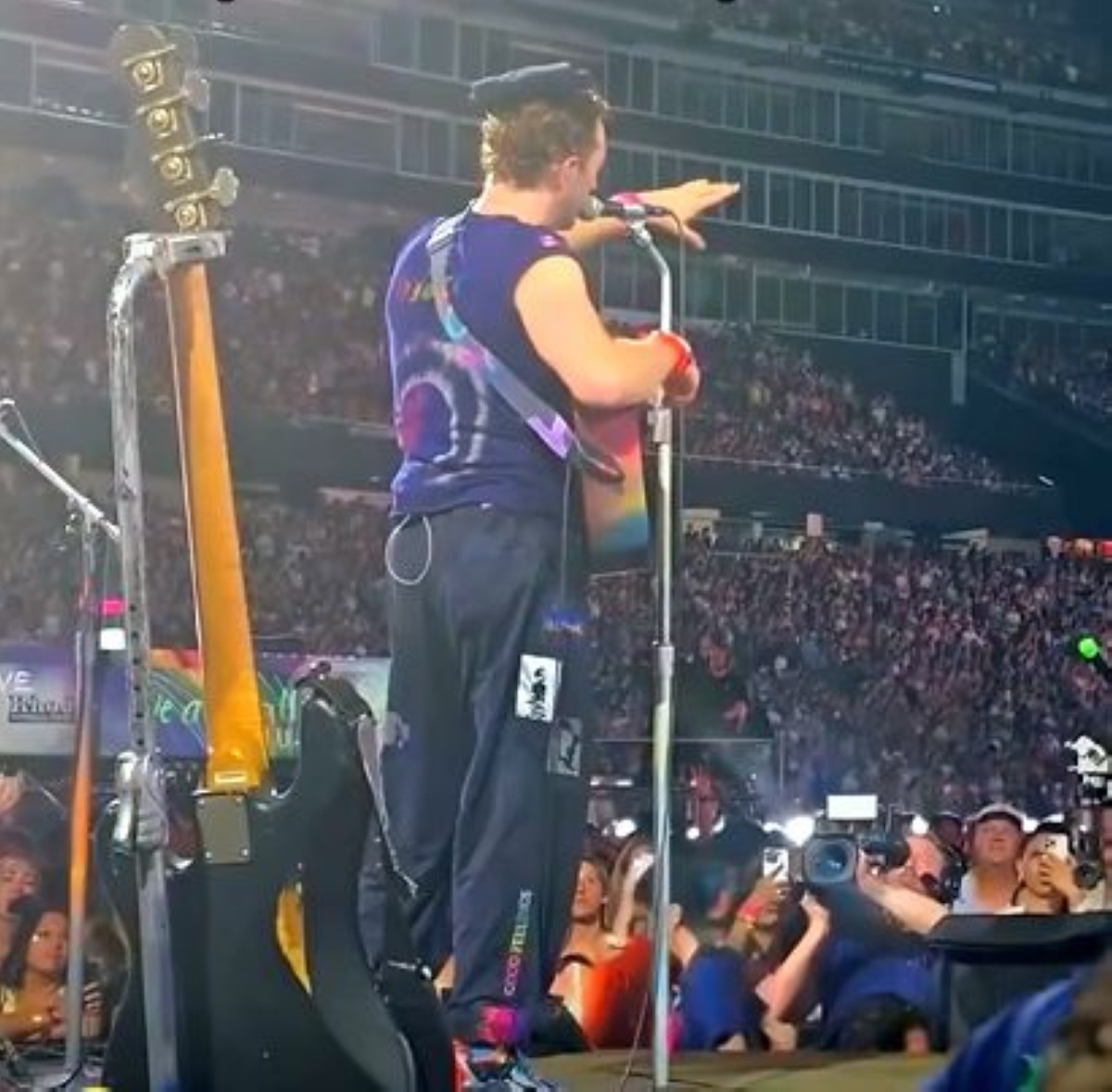 Iti dayta a konsierto a naangay iti Gillette Stadium iti Massachusetts idi Mierkoles (itoy a lawas), immuna a timmakder manipud iti ummong dagiti agbuybuya ti maysa a lalaki a nakasuot iti birthday sash.