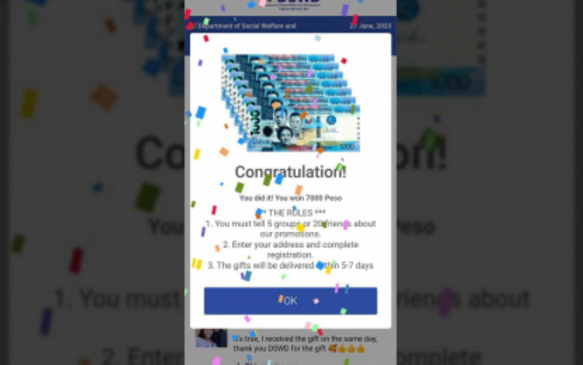 Binallaagan ti Department of Information and Communications Technology (DICT) ti publiko kontra iti scam a paskil iti Facebook manipud iti peke nga account/page ti Department of Social Welfare and Development (DSWD) a naglaon kadagiti malicious link.
