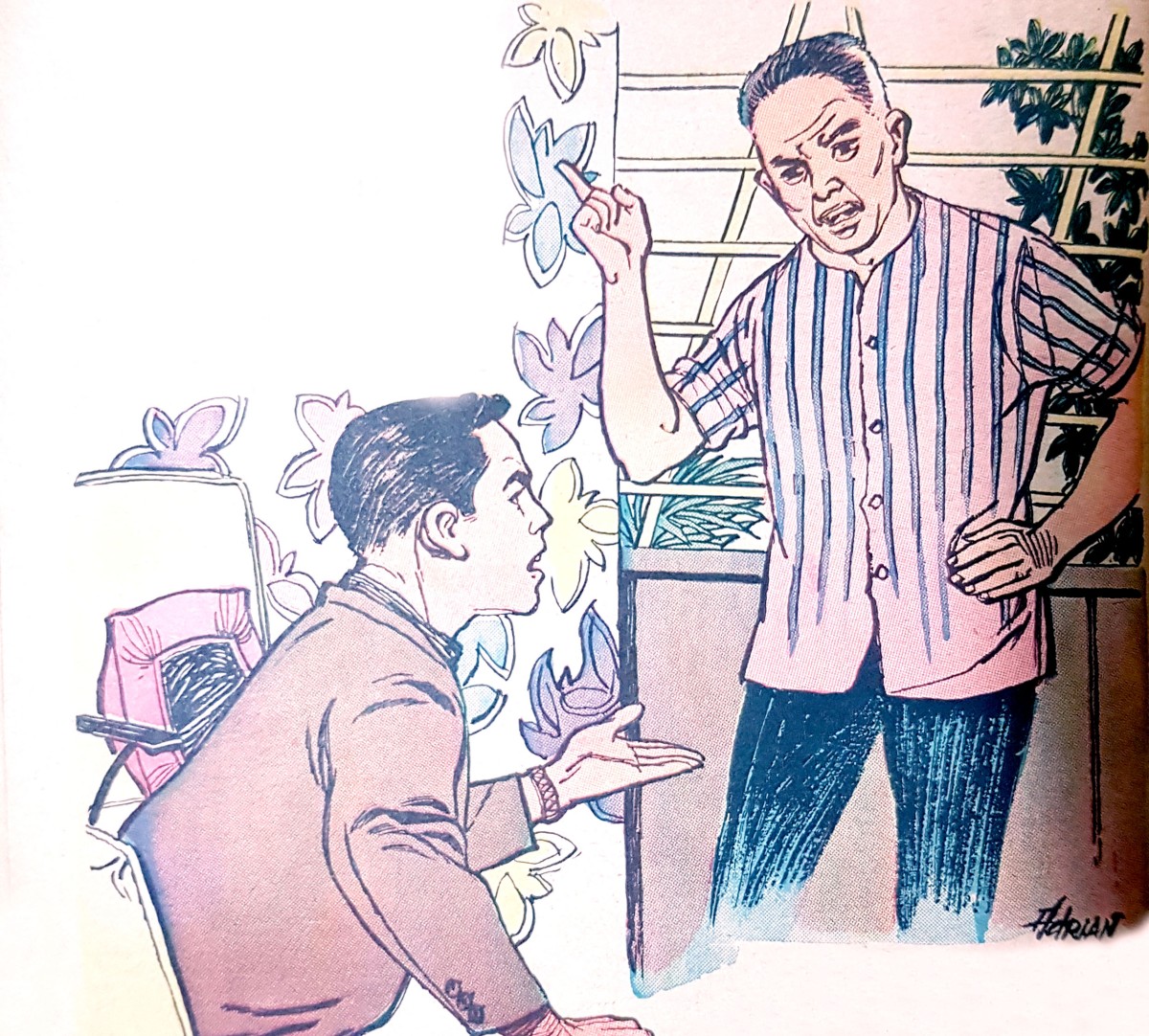 Nagkiriring manen ti adda iti lamisaan; agsasaruno. Nagpusipos ti lalaki ket arintarayen a nagturong iti siled. Ngem saan a nagbayag, ket idi agsubli manen iti narehasan a tawa, adda pay laeng a sitatangad ti amana.