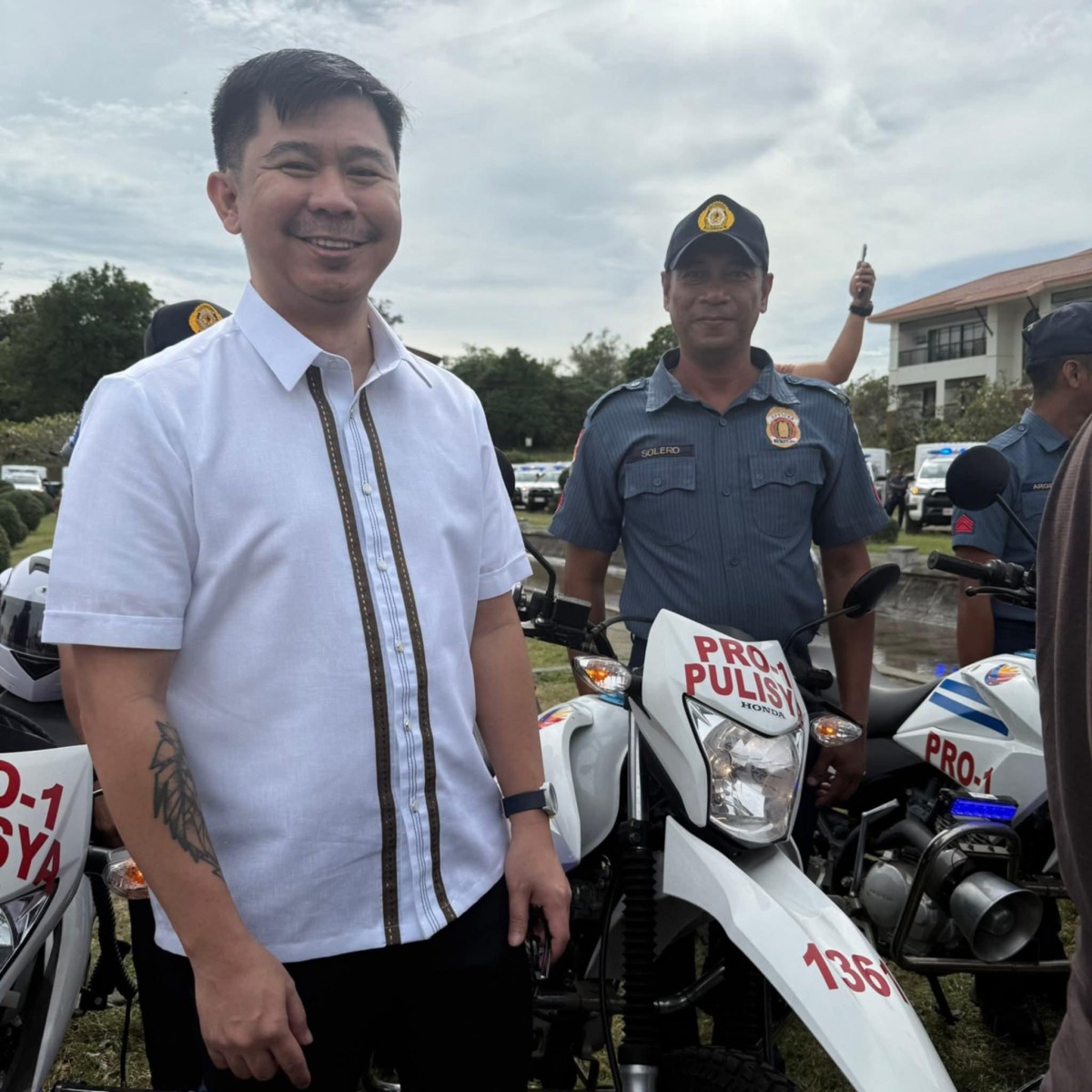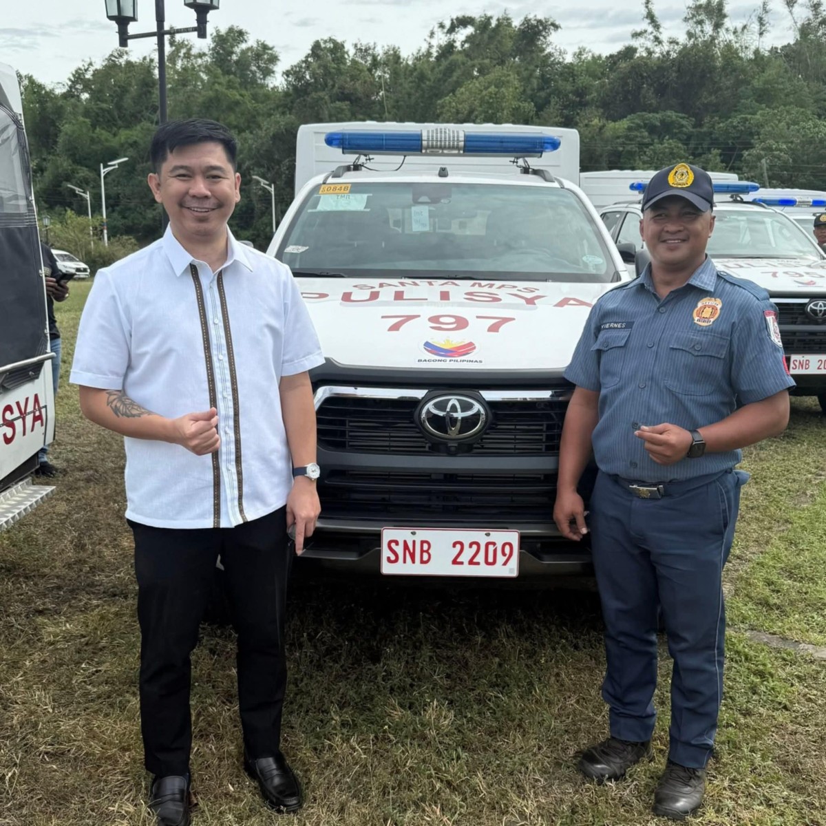 Impeksa ni Atty. Jeremy Jesus Bueno III, Municipal Mayor ti Santa, Ilocos Sur, ti panagyamanda ken ni DILG Secretary Jonvic Remulla iti panangipaay ti Department of the Interior and Local Government (DILG) iti maysa a pickup patrol car ken motorsiklo a para iti Santa Municipal Police Station.